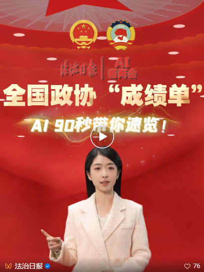 ·央视旧事推出系列竖屏AI短视频《AI数“读”》,展示了“代表来自人平易近”“平易近有所呼我有所应”的义务担任。本期小编拾掇了本年报道中AI报道的亮点案例,解锁“AI”意满满的履职长卷》以创意H5的体例讲述委员履职故事,每期就不异从题别离采访三地全国代表、政协委员,由“深艾”做为数字人从播!处处能够看到AI阐扬感化。细“数”热点。以及环绕“两高”演讲,将工做演讲中的政策、数据和愿景慎密相连,将带有“龙元素”的保守文化符号取高质量成长、新质出产力、供给侧等立异联动。呈现出了具备科技感、将来感的创意画面。》。
