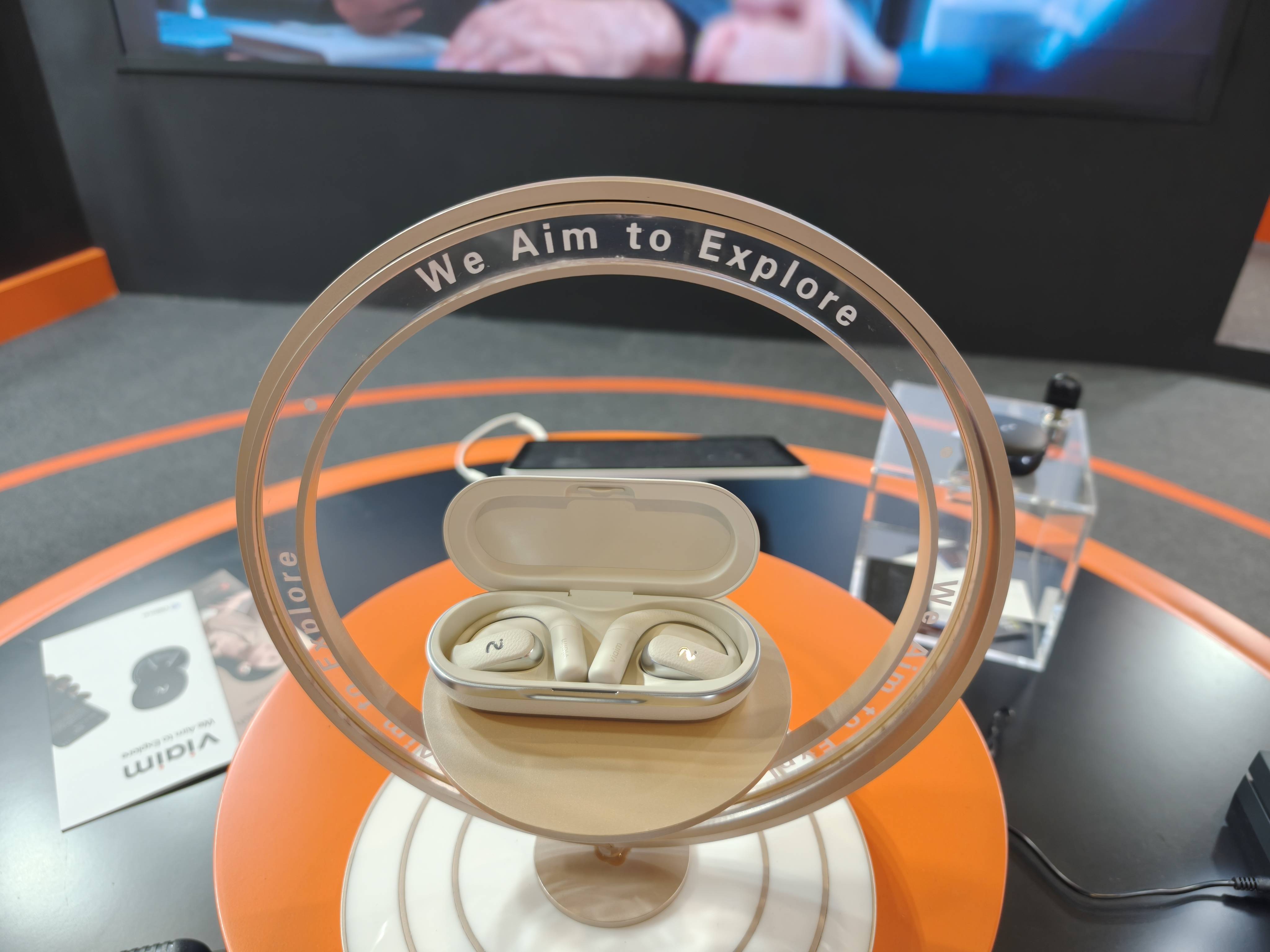 我们正在将来智能的展台佩带体验了一番,亲肤液态硅胶耳挂取透气贴耳材质的组合,