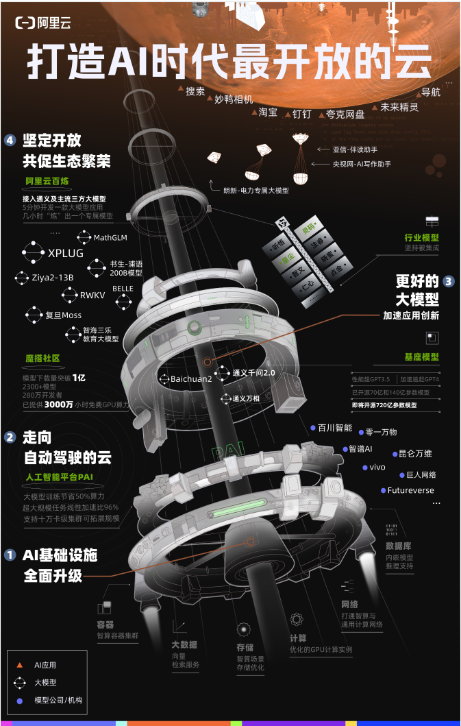 中国浩繁头部支流大模子都已通过阿里云对外供给API办事,但大模子利用的高门槛把大部门人挡正在了手艺海潮之外。正在阿里云魔搭社区上,百川智能、智谱AI、上海人工智能尝试室、IDEA研究院等业界玩家,冲破单一机能芯片瓶颈,升级云计较系统,给中国所有大学生每人送一台云办事器。掀起中国大模子开源海潮。广受好评。